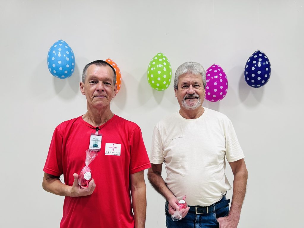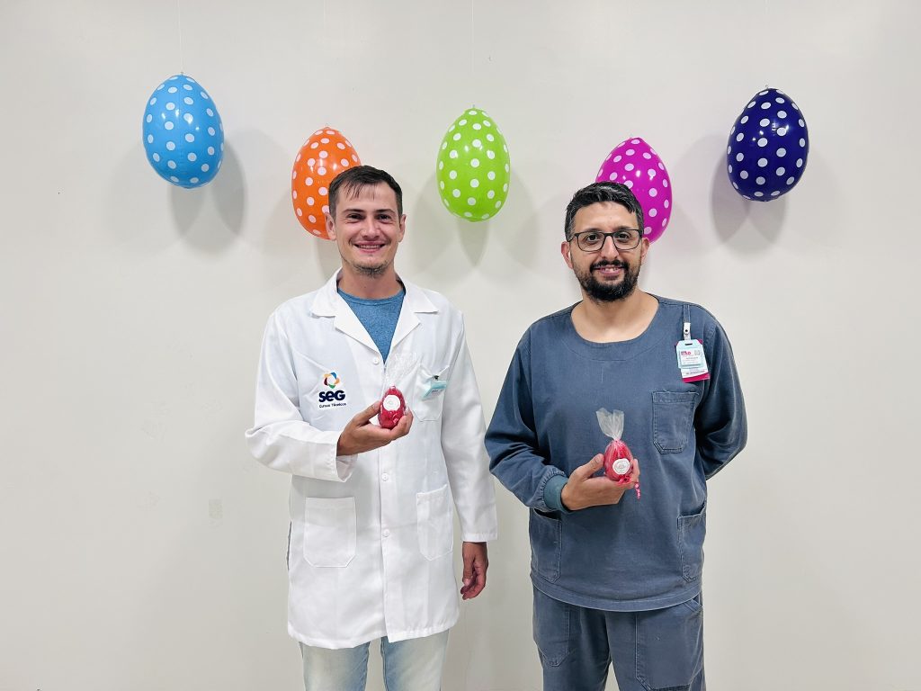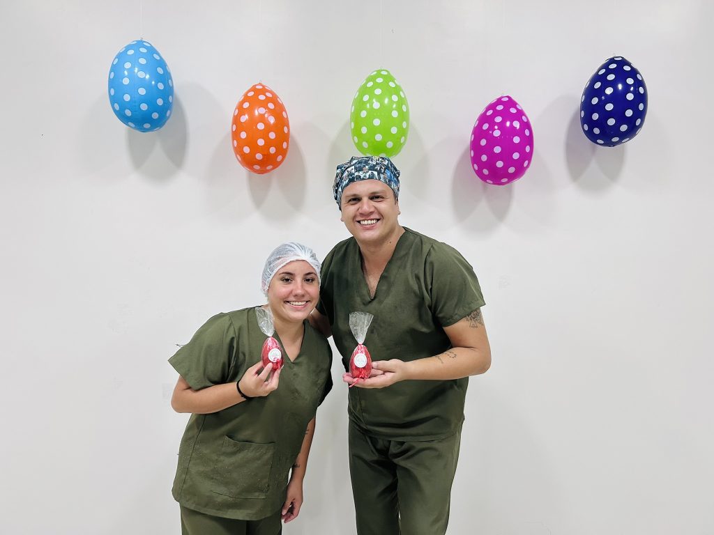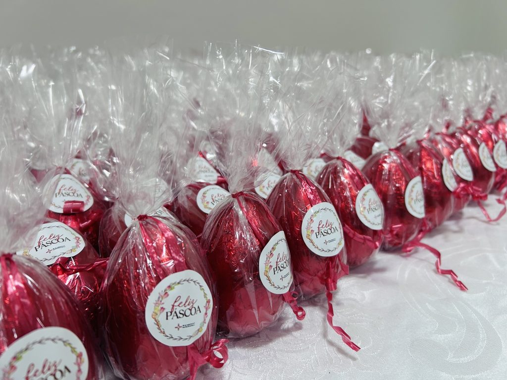 A ação foi possível graças à parceria de fornecedores do hospital, que contribuíram para que esse mimo chegasse a todos os nossos colaboradores.