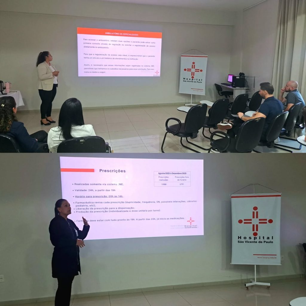 Durante a atividade, foram apresentadas as normas institucionais e as diretrizes do Programa de Residência Médica, além da integração dos profissionais à estrutura, aos fluxos assistenciais e às equipes do Hospital.Participaram da recepção os setores de Recursos Humanos, Enfermagem, Farmácia, Faturamento e Educação Continuada, bem como o Núcleo de Segurança do Paciente, o Núcleo Interno de Regulação, o Controle de Infecção Hospitalar e a Direção Médica, reforçando a importância do comprometimento com a excelência no cuidado e com o bem-estar dos pacientes.