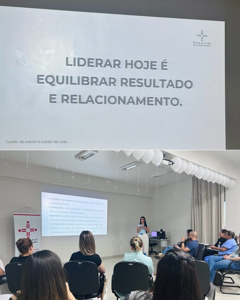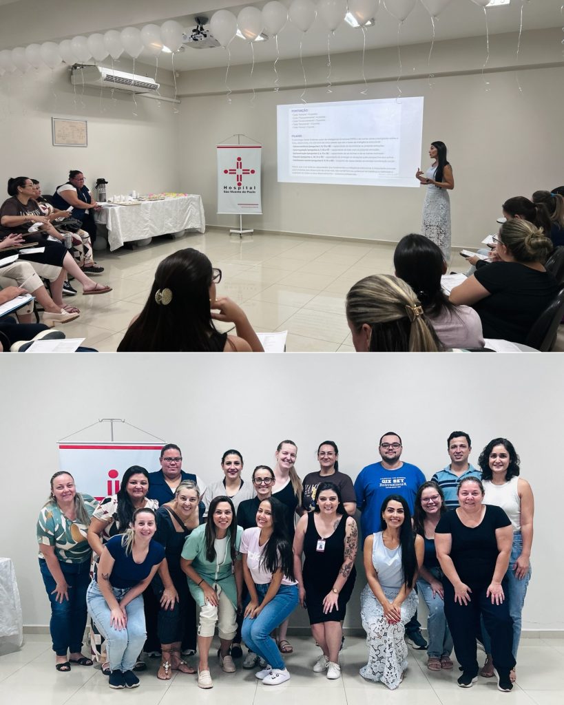 ✨ Dinâmicas com as equipes a fim de promover conversas abertas sobre o assunto – uso dos post-its na dinâmica “Nuvem de Objetivos”, por exemplo; rodas de conversa e orientações sobre saúde mental – espaço de acolhimento e incentivo às práticas de promoção ao equilíbrio emocional na rotina hospitalar; entrega de fuxicos brancos para os colaboradores (símbolo da campanha em nossa instituição) e capacitação sobre a saúde mental para lideranças.